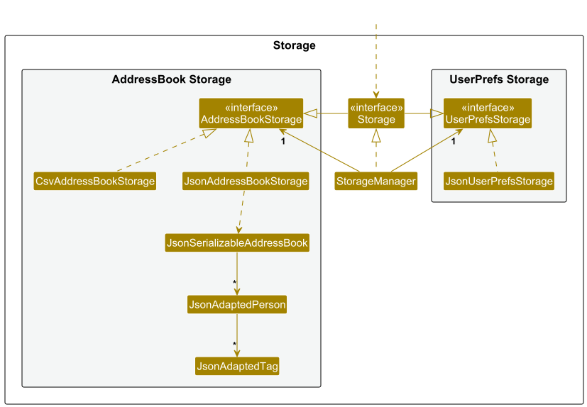 AddressBookStorageandUserPrefStorage, which means it can be treated as either one (if only the functionality of only one is needed). - depends on some classes in the